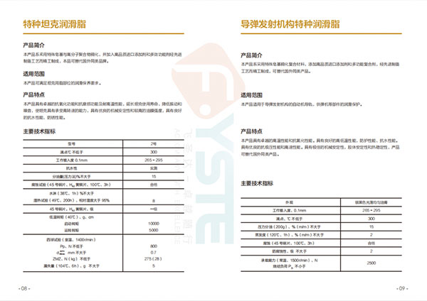 在軍工模塊,我們的油脂產(chǎn)品適應(yīng)于坦克、導(dǎo)彈發(fā)射臺(tái)架、火炮、裝甲車、飛機(jī)、儀表齒輪和傳動(dòng)陀螺桿、直升機(jī)擺動(dòng)軸承、硬膜及軟膜防銹油、鋼絲繩潤滑油、超高溫特種脂等等。