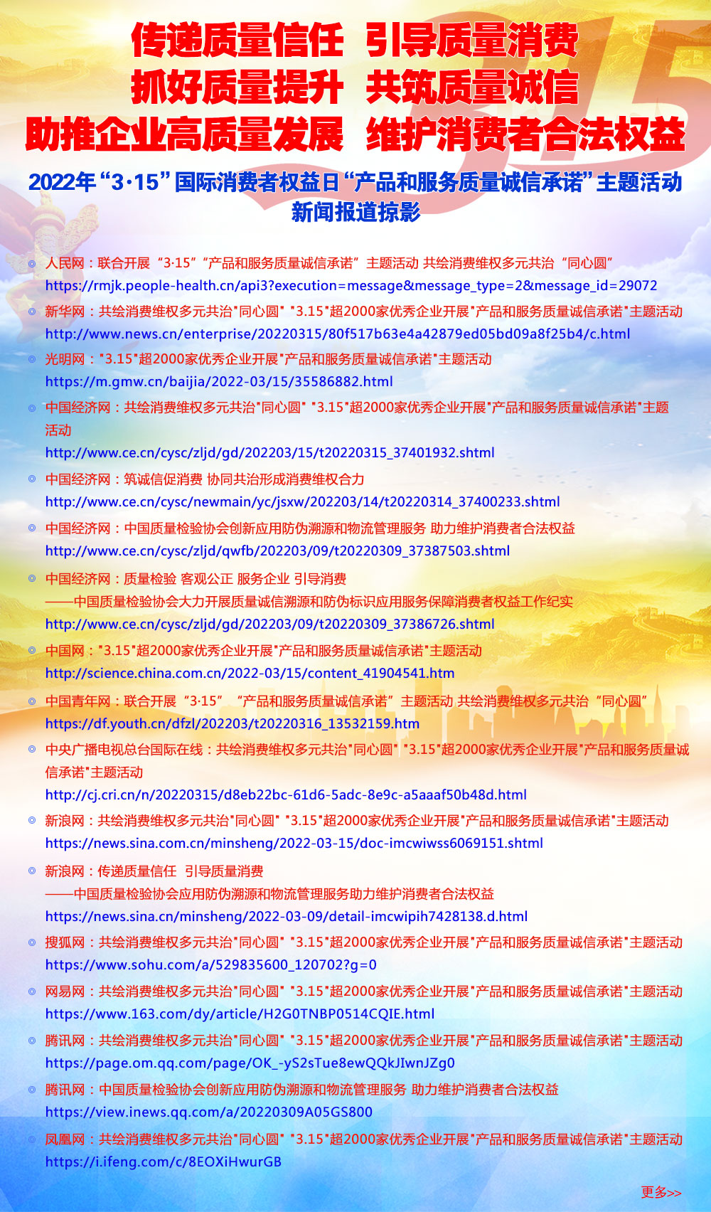 日前,在中國(guó)質(zhì)量檢驗(yàn)協(xié)會(huì)主辦的2022年3·15國(guó)際消費(fèi)者權(quán)益日“產(chǎn)品和服… 北京隆盛泰健康科技股份有限公司
