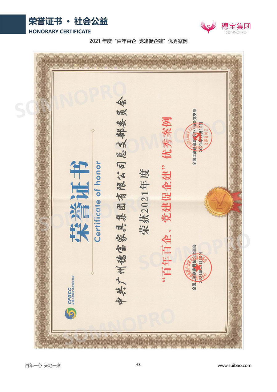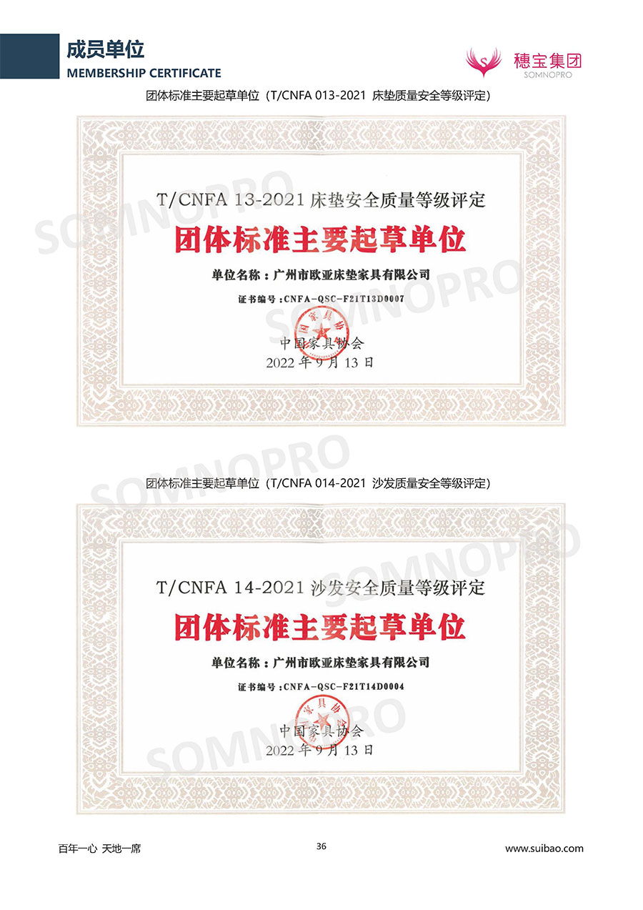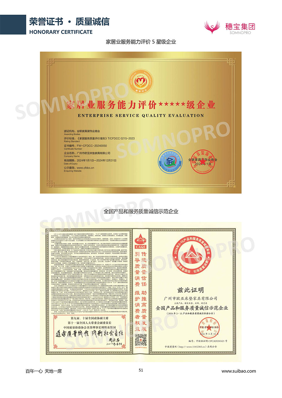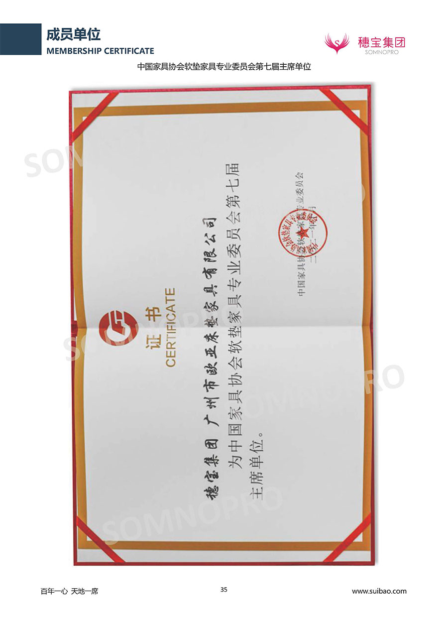 本著高品質(zhì)、高效率、重管理的原則,穗寶已通過ISO9001質(zhì)量管理體系認(rèn)證證書、ISO14001環(huán)境管理體系認(rèn)證證書、ISO45001職業(yè)健康安全管理體系認(rèn)證證書、中國(guó)環(huán)境標(biāo)志產(chǎn)品認(rèn)證證書、家居綠色環(huán)保領(lǐng)跑品牌、綠色正品家居品牌、企業(yè)標(biāo)準(zhǔn)“綠色領(lǐng)跑者”證書、CMS測(cè)量管理體系證書、CMS測(cè)量管理體系證書附件、廣東省“守信用重合同”企業(yè)、廣州歐亞-納稅信用A級(jí)納稅人(連續(xù)5年:2018-2022)、2024年中國(guó)500最具價(jià)值品牌,品牌價(jià)值高達(dá)302.89億元、廣東高價(jià)值商標(biāo)品牌(穗寶)、廣東省重點(diǎn)商標(biāo)保護(hù)名錄納入證明、廣州市勞動(dòng)關(guān)系和諧企業(yè)AA級(jí)。穗寶自創(chuàng)立以來,不斷致力于新產(chǎn)品的設(shè)計(jì)與研發(fā),多次在國(guó)內(nèi)家具展會(huì)屢獲獎(jiǎng)項(xiàng),產(chǎn)品暢銷國(guó)內(nèi)外,深受客戶一致好評(píng)。