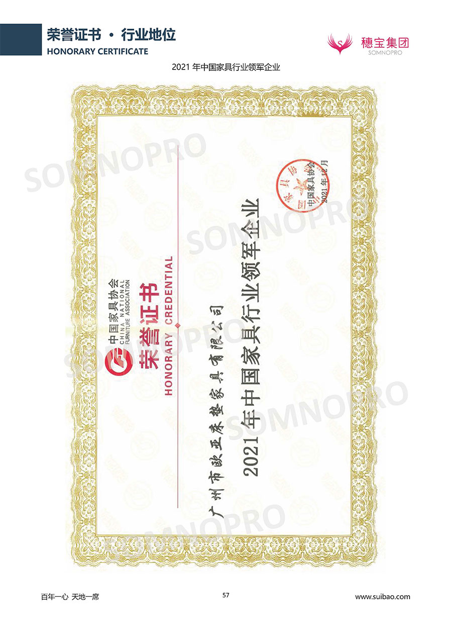 自1971年獨(dú)立研發(fā)生產(chǎn)出專屬國(guó)人的彈簧床墊,穗寶關(guān)于優(yōu)質(zhì)深度睡眠的研究已有半個(gè)世紀(jì)的歷史。穗寶一直專注床墊,專注中國(guó)消費(fèi)者的睡眠研究,針對(duì)中國(guó)人特點(diǎn)進(jìn)行優(yōu)化創(chuàng)新,不斷提升國(guó)人的睡眠體驗(yàn),只為成就每個(gè)晚上8小時(shí)的優(yōu)質(zhì)深度睡眠。憑借不斷革新的研發(fā)科技和深受消費(fèi)者信賴的產(chǎn)品品質(zhì),穗寶集團(tuán)旗下品牌和產(chǎn)品屢獲國(guó)內(nèi)外大獎(jiǎng),連續(xù)20年榮膺中國(guó)500最具價(jià)值品牌,品牌價(jià)值高達(dá)302.89億元。