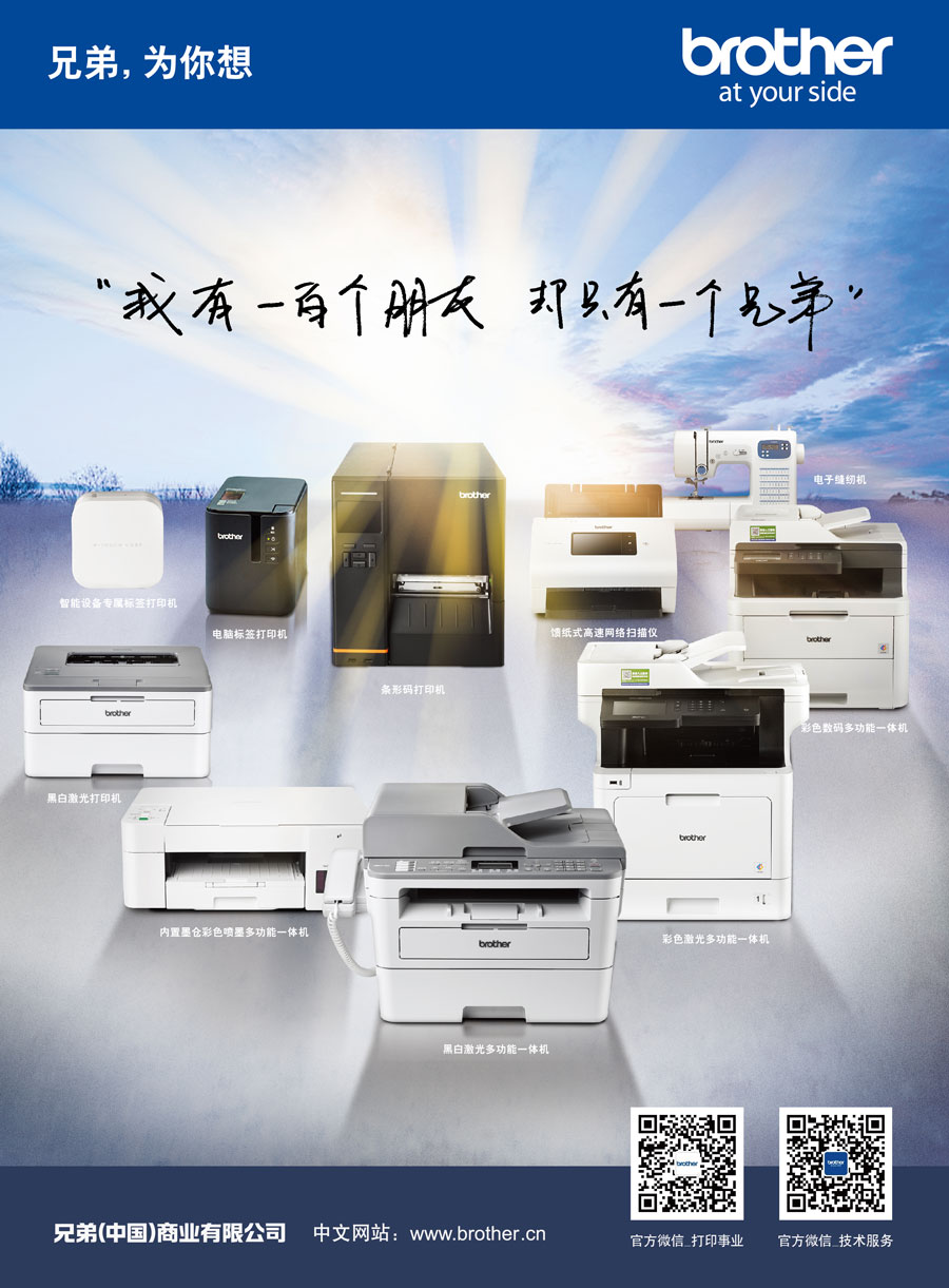 Brother作為擁有110多年歷史的國際化品牌,目前已在全球40個(gè)以上的國家和地區(qū)擁有研究開發(fā)基地、生產(chǎn)基地以及銷售公司。作為Brother集團(tuán)在中國的產(chǎn)品銷售與服務(wù)的外商獨(dú)資企業(yè),兄弟(中國)充分利用集團(tuán)的資源優(yōu)勢,秉承“At your side.”的企業(yè)文化理念,遵循顧客第一的宗旨,傾聽顧客的呼聲,為中國消費(fèi)者提供更多具有高附加值的產(chǎn)品和服務(wù)。兄弟(中國)的事業(yè)領(lǐng)域包括以打印機(jī)、多功能一體機(jī)、傳真機(jī)、標(biāo)簽打印機(jī)、掃描儀等產(chǎn)品為代表的打印及解決方案事業(yè);以家用縫紉機(jī)、商用繡花機(jī)、電腦花樣裁切機(jī)為中心的家用機(jī)器事業(yè)。