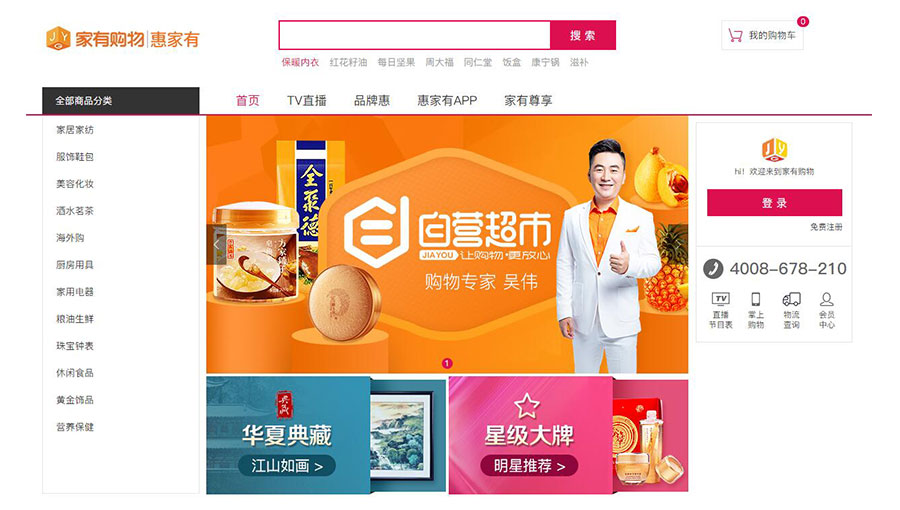 主要產(chǎn)品:家居用品、家用電器、服裝鞋帽、食品、美妝、珠寶首飾、收藏品、運(yùn)動健康用品、家紡用品等產(chǎn)品