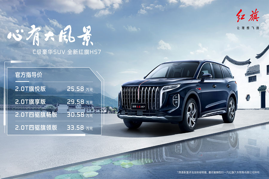 8月25日,“心有大風(fēng)景——全新紅旗HS7上市發(fā)布會”在第二十六屆成都國際汽車展覽會舉行。紅旗品牌C級豪華SUV——全新紅旗HS7正式上市,官方指導(dǎo)價25.58萬~33.58萬元。