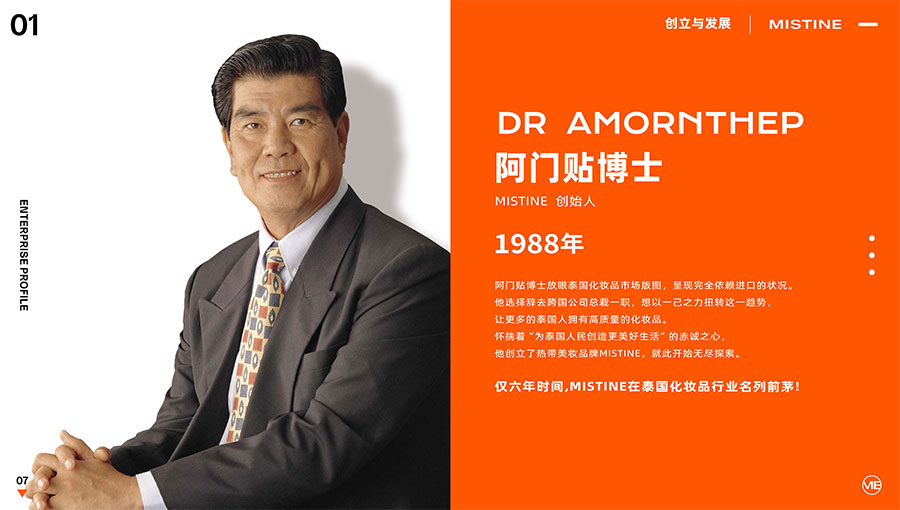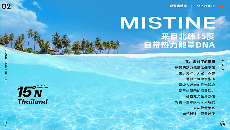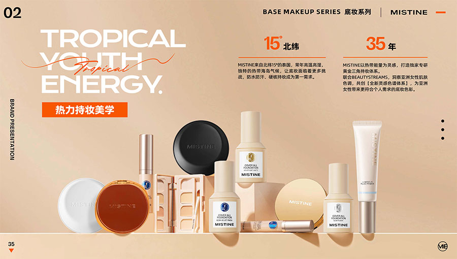 MISTINE蜜絲婷1988年始源于泰國(guó),作為知名國(guó)際美妝品牌,擁有超過(guò)35年的科研底蘊(yùn),產(chǎn)品種類涵蓋防曬、美妝、護(hù)膚、香水、個(gè)護(hù)五大類,擁有近6000多個(gè)單品暢銷(xiāo)全球20多個(gè)國(guó)家,專注為全球女性提供豐富、安全、高品質(zhì)的美妝產(chǎn)品。自2016年進(jìn)入中國(guó)后,MISTINE蜜絲婷以“熱帶青春能量美妝”為品牌定位,為年輕人打造更懂得他們的全新美妝產(chǎn)品,并傳遞獨(dú)特的健康活力生活方式。