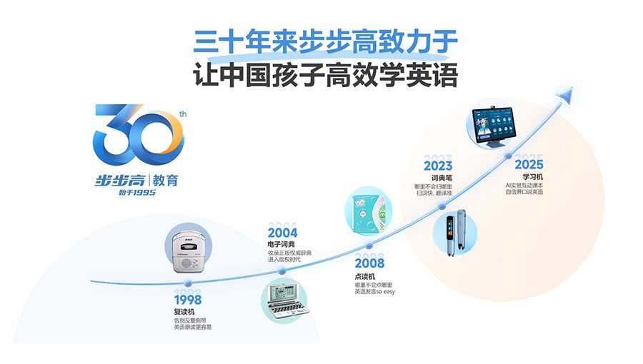 歷經30年發(fā)展,“步步高”品牌先后推出了復讀機、點讀機、學習機、家教機、智能學習平板、詞典筆等經典產品,深受家長和學生認可,是中國電教行業(yè)領先品牌。