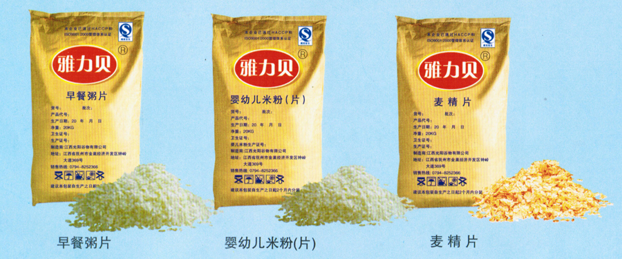 公司引進(jìn)先進(jìn)生產(chǎn)線,按照國家食品GMP標(biāo)準(zhǔn)要求設(shè)計(jì),達(dá)到1萬級的凈化生產(chǎn)車間和檢測中心,專業(yè)提供嬰幼兒米粉、營養(yǎng)糊、早餐粥片等原料及OEM加工,公司以通過HACCP和ISO9001:2000質(zhì)量管理體系認(rèn)證及QS食品質(zhì)量安全生產(chǎn)許可證。