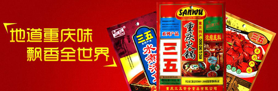 重慶三五世全食品有限公司(原重慶市渝中區(qū)三五火鍋佐料廠)是一家以生產、銷售火鍋佐料及調料為一體的老品牌食品公司。初期從兩、三人的手工式小作坊發(fā)展成為今天占地60多畝,員工300多人的現(xiàn)代化食品公司,并且擁有行業(yè)中先進的現(xiàn)代化生產設備、全封閉自動化的生產車間以及高素質的管理人才。年生產、銷售火鍋佐料及調料萬余噸,產品暢銷國內外。