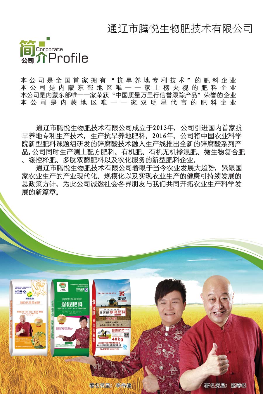 ※ 企業(yè)是內(nèi)蒙地區(qū)唯一一家雙明星代言的肥料企業(yè)。