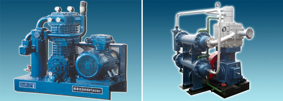 壓縮機(jī)產(chǎn)品可分六大系列:a.液化氣系列;b.天然氣系列(含天然氣增壓、原油穩(wěn)定、輕烴回收、天然氣汽車加氣、高壓充瓶、油井干或濕套管氣回收、煤層氣壓縮機(jī)系列);c.化工工藝壓縮機(jī);d.工業(yè)特種氣體系列壓縮機(jī);e.一般動(dòng)力工程用壓縮機(jī);f.油田、軍用中高壓系列壓縮機(jī),近百個(gè)規(guī)格品種,排氣量從0.1~40 m3/min,排氣壓力從0.2 MPa~35 Mpa。