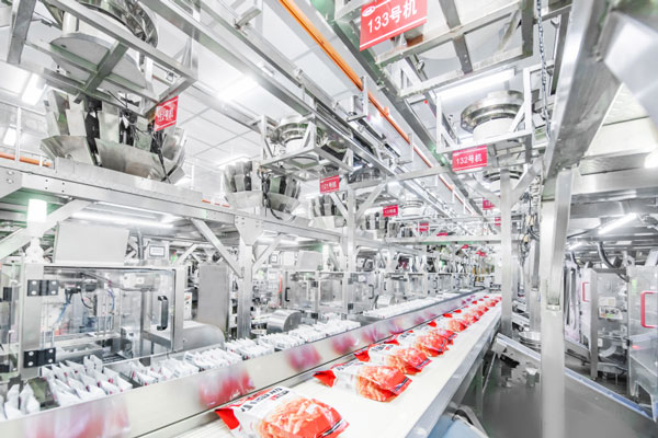 衛(wèi)龍辣條產(chǎn)品自動化生產(chǎn)線。
