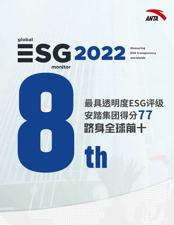 安踏集團位列Global ESG Monitor 2022全球最具透明度ESG報告第八位及香港藍籌之冠