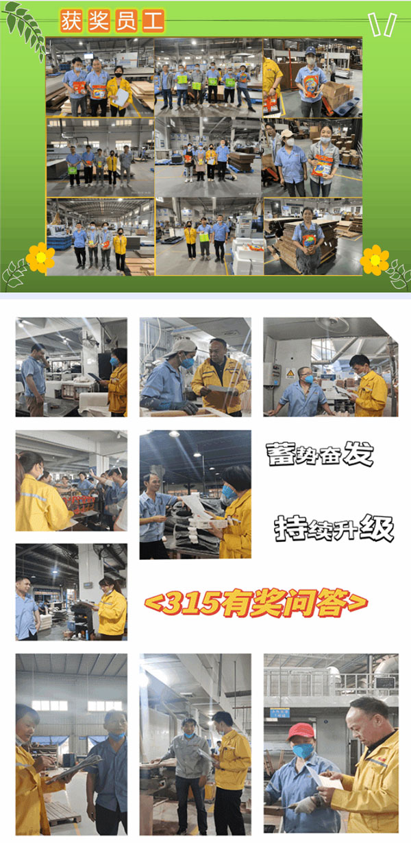“3.15”活動(dòng)圓滿落下帷幕,對(duì)于廣東華盛家具集團(tuán)而言,自成立以來(lái)始終將“創(chuàng)鑄名牌,服務(wù)社會(huì)”企業(yè)使命深植于心,外化于行,堅(jiān)守初心“用心創(chuàng)造品質(zhì),匠心鑄造品牌,為客戶乃至社會(huì)提供更優(yōu)質(zhì)產(chǎn)品和體驗(yàn)”堅(jiān)持質(zhì)在每一天,365天每天都是“3.15”,此次活動(dòng)的成功舉辦標(biāo)志著2023年廣東華盛家具集團(tuán)宣傳系列活動(dòng)全面展開(kāi),全員投身參與企業(yè)“同行業(yè)、同類(lèi)型、最高檔次”品質(zhì)建設(shè),形成產(chǎn)品質(zhì)量“零缺陷”, 人人創(chuàng)造質(zhì)量,人人享受質(zhì)量新局面,推動(dòng)企業(yè)邁入高質(zhì)量跨越發(fā)展新時(shí)代,再創(chuàng)佳績(jī),2023年蓄勢(shì)奮發(fā),持續(xù)升級(jí)。