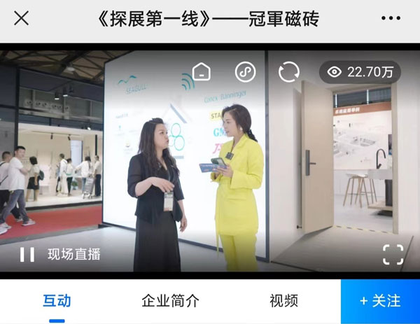 線上經(jīng)濟(jì)時(shí)代,新媒體平臺(tái)各行其道,借此展會(huì)契機(jī),冠軍磁磚攜手騰訊家居|貝殼頻道開展“探展第一線”線上直播活動(dòng),由設(shè)計(jì)好物·主理人、騰訊家居|貝殼頻道總裁 張英梅(YOYO)傾情出鏡,冠軍磁磚巖板中心副總經(jīng)理 唐小敏親自上陣。騰訊家居|貝殼平臺(tái)直播,“智造聯(lián)盟”、“冠軍磁磚官方”等賬號(hào)平臺(tái)同步轉(zhuǎn)播,截止直播結(jié)束,線上觀看量超230000人次。從展位帶逛、巖板應(yīng)用區(qū)展示到冠軍巖板優(yōu)勢(shì)分析解讀及品牌戰(zhàn)略布局,帶線上觀眾沉浸式觀展,直播間實(shí)時(shí)粉絲互動(dòng),線上氣氛火熱。