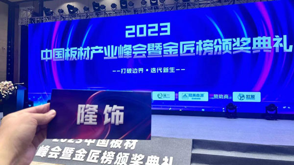 7月1日,中國木業(yè)網(wǎng)主辦的“2023中國板材產(chǎn)業(yè)峰會暨金匠榜頒獎典禮”于在杭州隆重開幕。本次峰會吸引了眾多行業(yè)精英和專家學者的關(guān)注,成為板材產(chǎn)業(yè)的盛事。在此次盛會上,備受矚目的隆飾板材憑借其卓越的產(chǎn)品力和服務(wù)力,榮獲家具板十大品牌的殊榮。