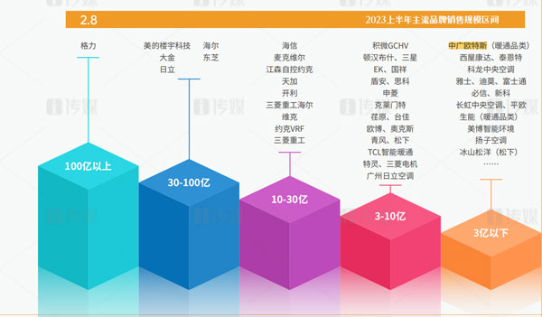 作為“熱泵行業(yè)領(lǐng)軍品牌”的中廣歐特斯,從2018年起逐步轉(zhuǎn)型向暖通與舒適家居領(lǐng)域滲透。經(jīng)過(guò)多年積累,中廣歐特斯在2023年上半年依然保持著逆勢(shì)而上的發(fā)展優(yōu)勢(shì),在主流品牌3億以下銷(xiāo)售規(guī)模中占據(jù)頭部位置。