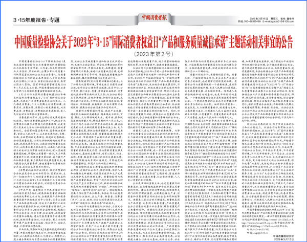 - 人民網(wǎng)報道——中國質(zhì)量檢驗協(xié)會:強(qiáng)質(zhì)量重承諾 引導(dǎo)質(zhì)量消費(2026-03-16)