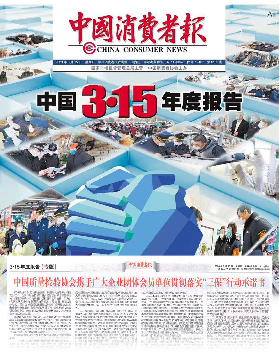 中國(guó)質(zhì)量報(bào)《不忘初心 勇毅擔(dān)當(dāng) 守望相助 傳遞信任——中國(guó)質(zhì)量檢驗(yàn)協(xié)會(huì)攜手廣大會(huì)員企業(yè)響應(yīng)“三保”行動(dòng)并組織開展2020年“3·15”產(chǎn)品和服務(wù)質(zhì)量誠(chéng)信活動(dòng)》
