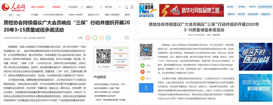 新華網(wǎng)《質(zhì)檢協(xié)會(huì)持續(xù)倡議廣大會(huì)員響應(yīng)“三保”行動(dòng)并組織開展2020年3·15質(zhì)量誠(chéng)信承諾活動(dòng)》