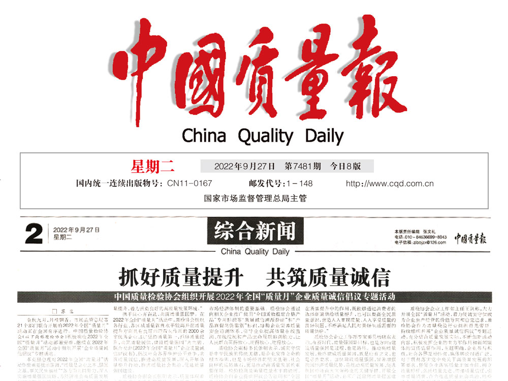 中國消費(fèi)者報(bào):堅(jiān)持質(zhì)量第一 抓好質(zhì)量提升 共筑質(zhì)量誠信 建設(shè)質(zhì)量強(qiáng)國